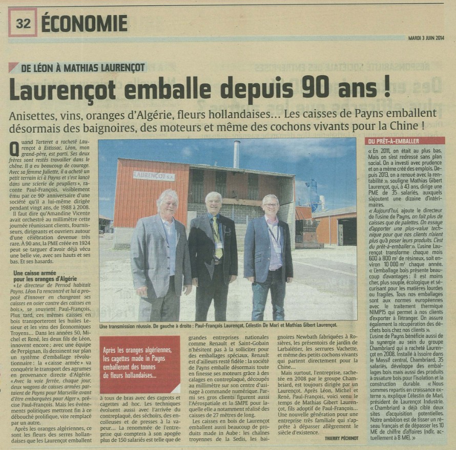 Revue de presse - LAURENCOT INDUSTRIES PAYNS AUBE CHAMPAGNE EMBALLAGE CONDITIONNEMENT PACKAGING EN BOIS